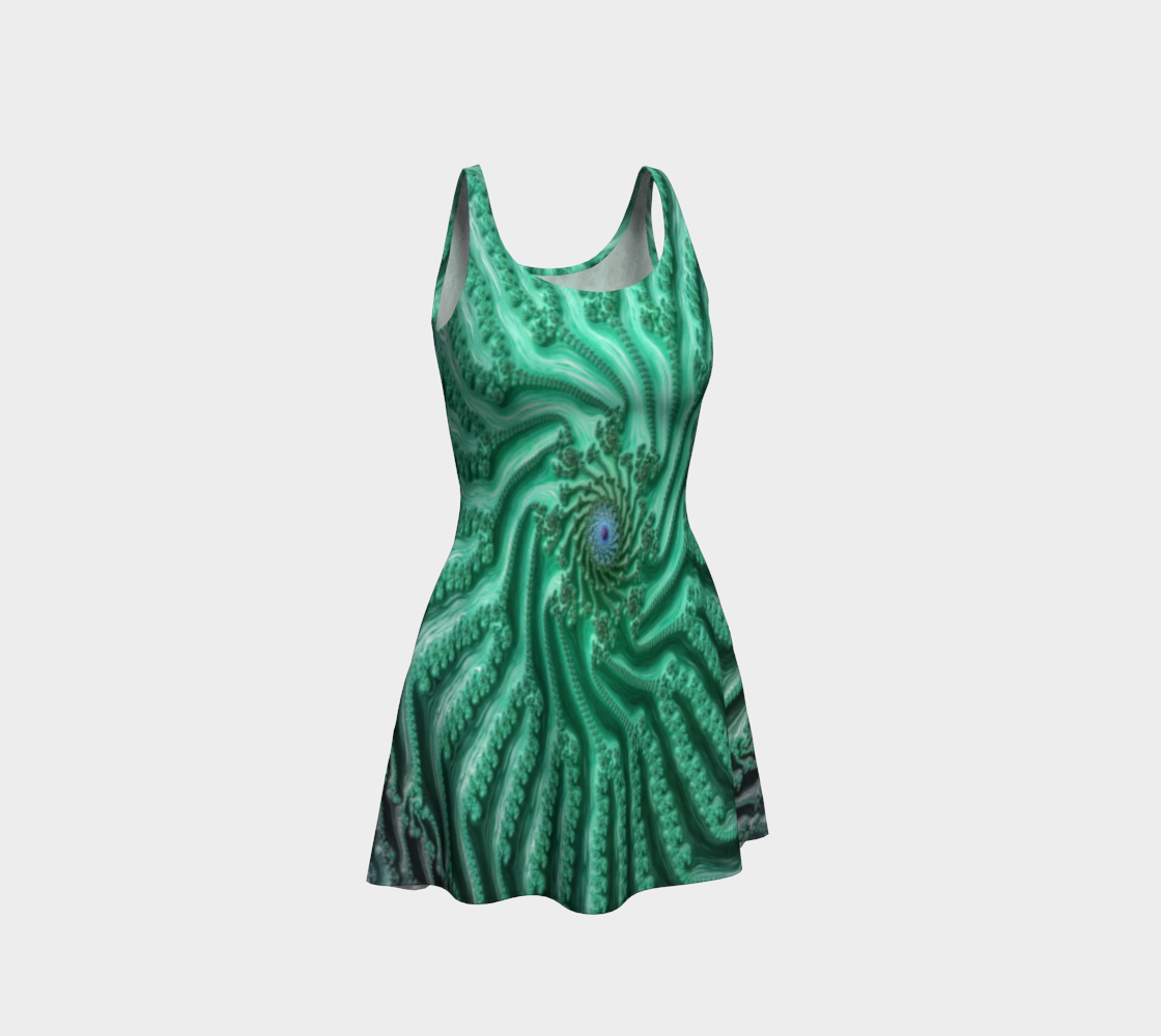 Fractal Aqua Spiral Flare Dress