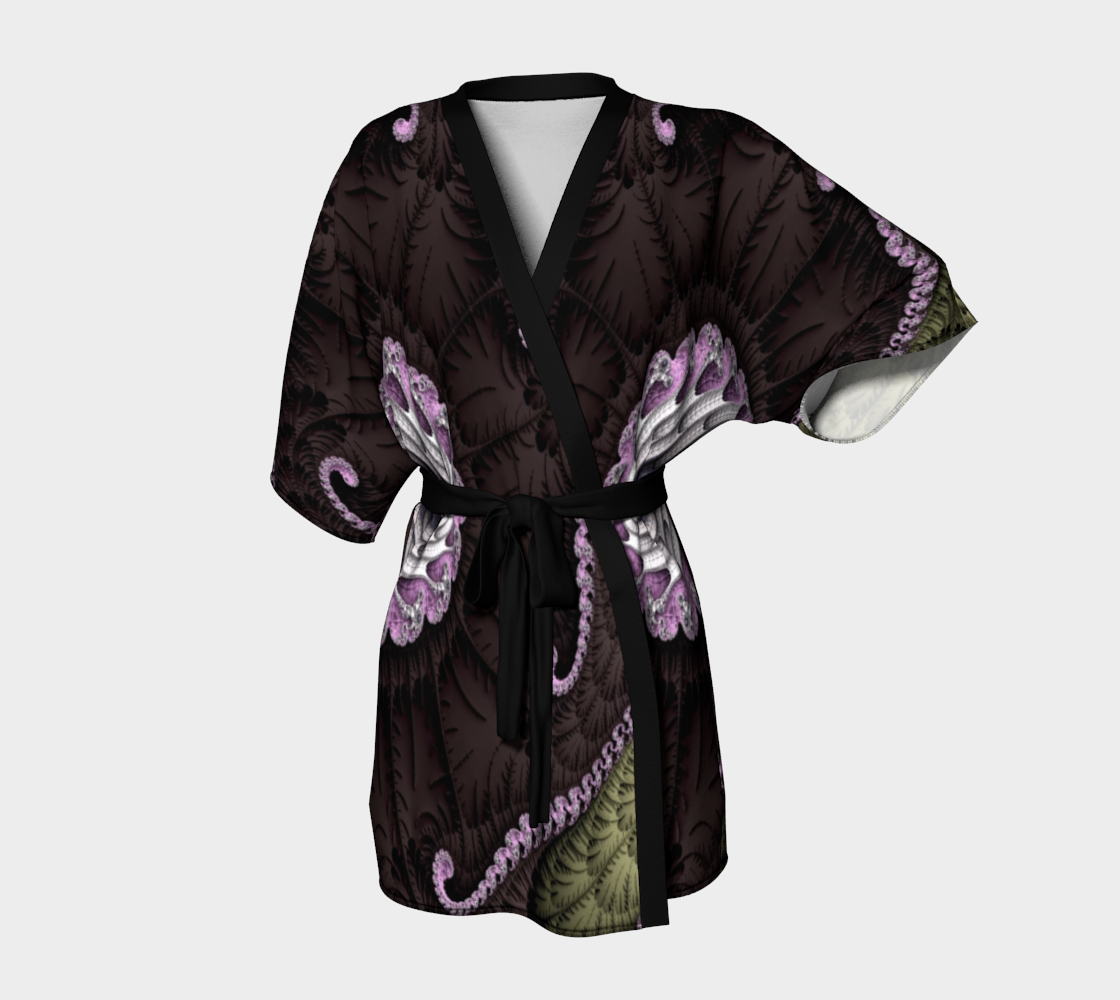 Chocolate Dream Silk Kimono Robe Dressing Gown by frACTalACTions. Fractal Artwork pairs with luxury in this fine line of custom silk kimonos. Dramatic, elegant look, is custom printed and handsewn to your specifications. Bamboo fabric trim and belt available in black, creme, or grey. Perfect for special occasions, gallery shows and festivals! Brand FractalAction